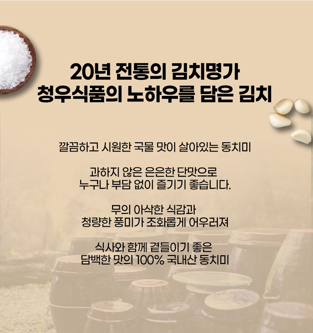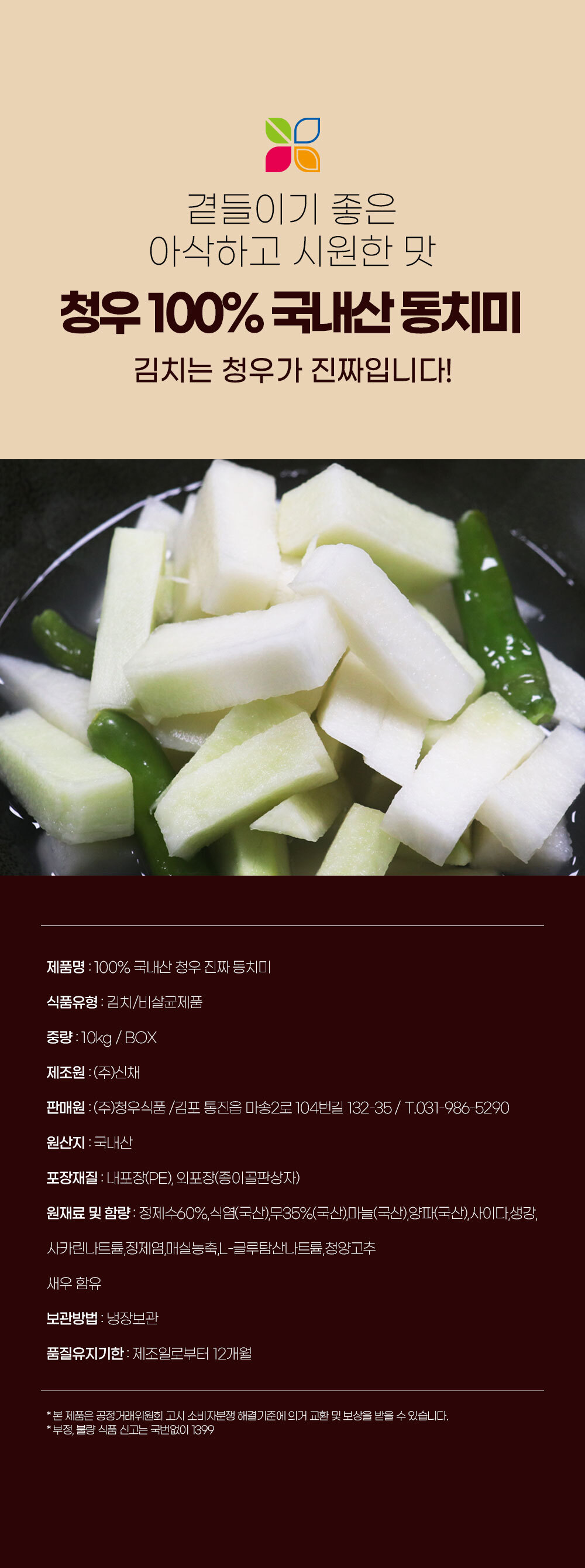 HOME > ALL > 김치 > 청우 진짜 100% 국내산 동치미 10kg