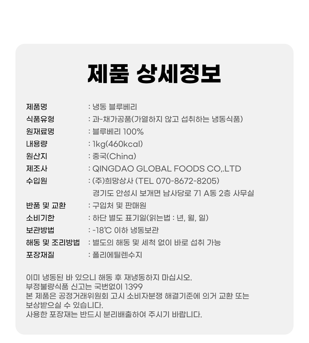진짜냉동상회 프리미엄 냉동 블루베리 1kg