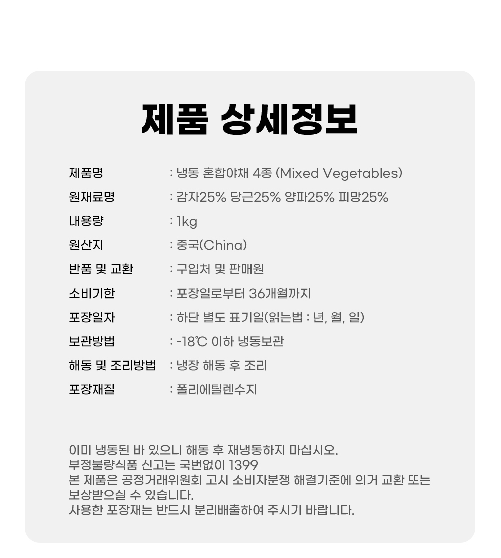 - 상품구성 [농수산물 표시사항] 항목 참조