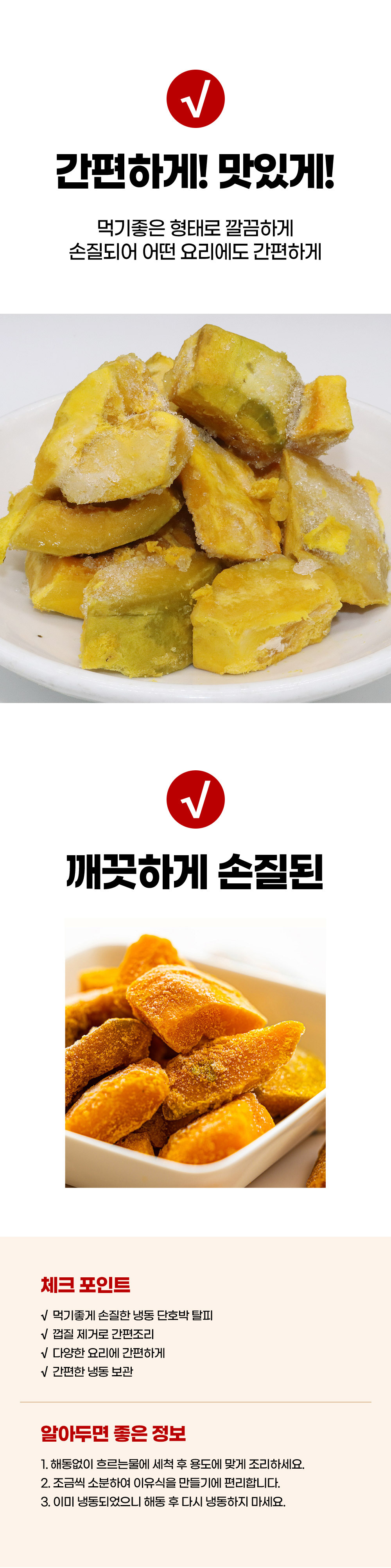 HOME > ALL > 냉동상품 > 진짜냉동상회 프리미엄 냉동 단호박 탈피 4~6cm 다이스 1kg