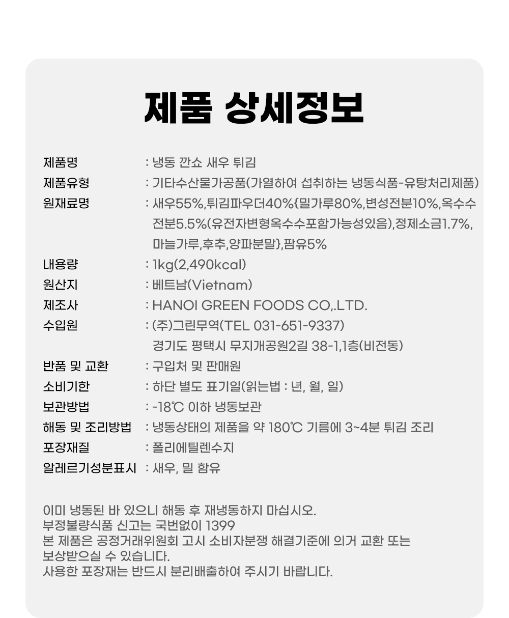 HOME > ALL > 냉동상품 > 진짜냉동상회 바삭한 냉동 깐쇼 새우 튀김 1kg